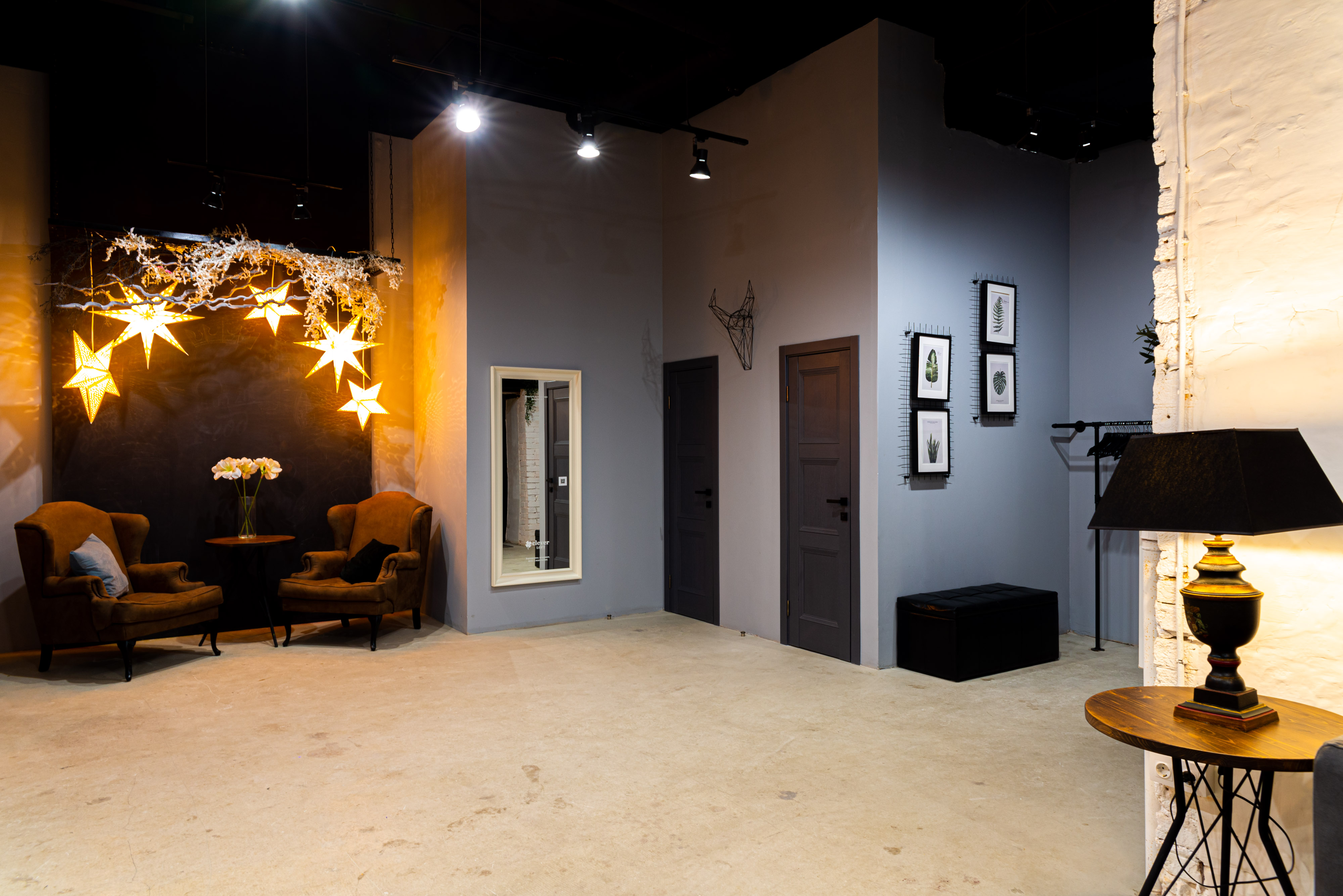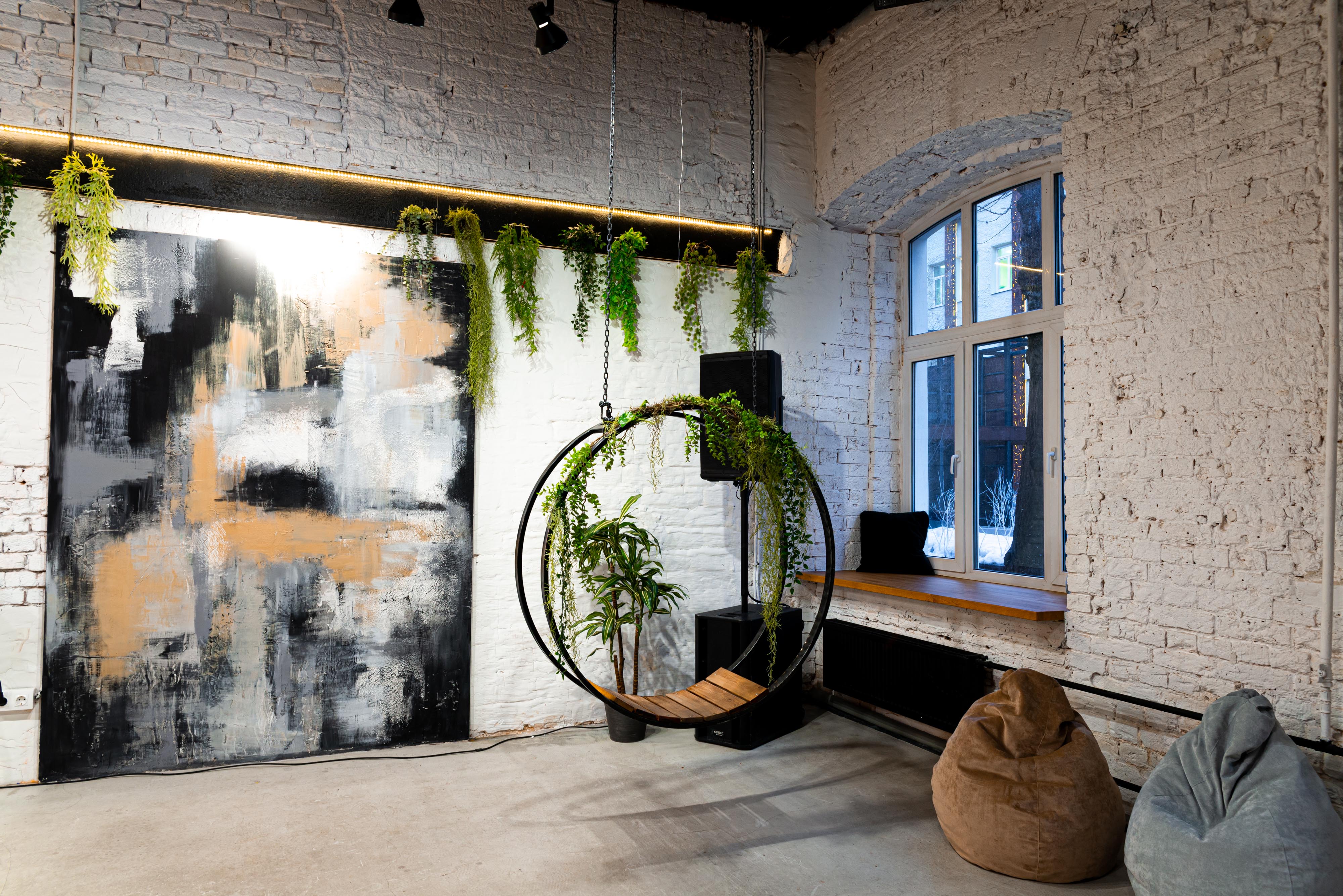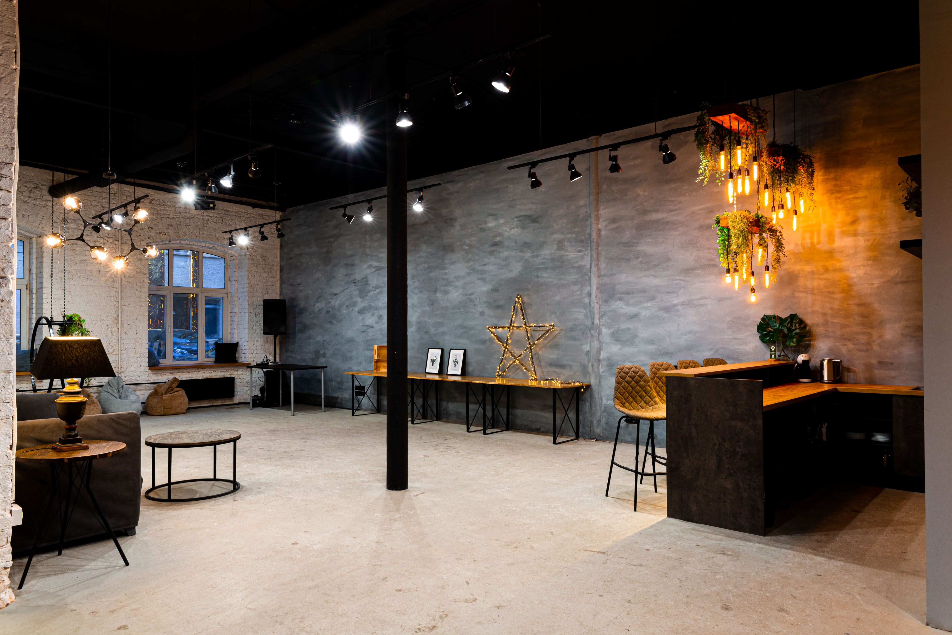 2 лофта – 120 и 140 кв.м, клубный звук, светомузыка, закрытая территория, качели, барная стойка, новогодний интерьер